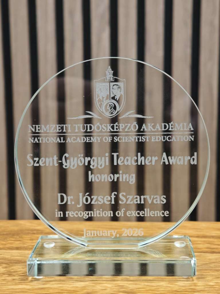A Nemzeti Tudósképző Akadémia január hónapban Kiváló Szentgyörgyi Tanár díjjal ismerte el Dr. Szarvas József munkáját adta hírül az Egri Dobó István Gimnázium közösségi oldalán.
