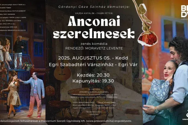 augusztus 5. 20:30 – Egri Vár, Eger 3300 JEGYVÁSÁRLÁS Anconai szerelmesek – zenés komédia Gárdonyi Géza Színház bemutatja: VAJDA KATALIN…