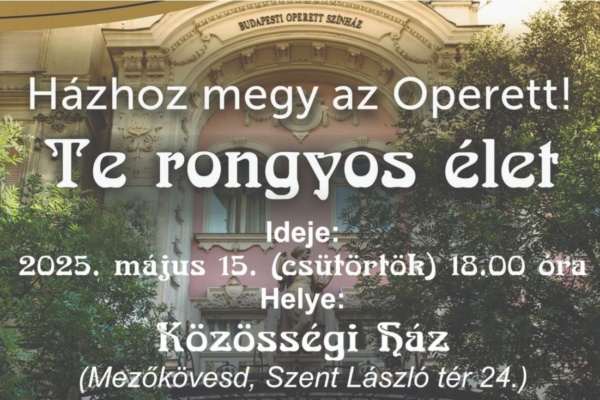 „Házhoz megy az operett! Te rongyos élet” címmel különleges előadásra várja az érdeklődőket a Közösségi Ház. Május 15-én, csütörtökön 18…