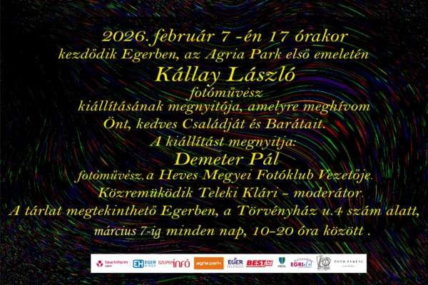 Szeretettel meghívjuk „A MÚLT EMLÉKEI” címmel KÁLLAY LÁSZLÓ fotóművész önálló fotókiállítására! Időpontja: 2026. február 07. (szombat) 17:00 óraHelye: Agria Park…